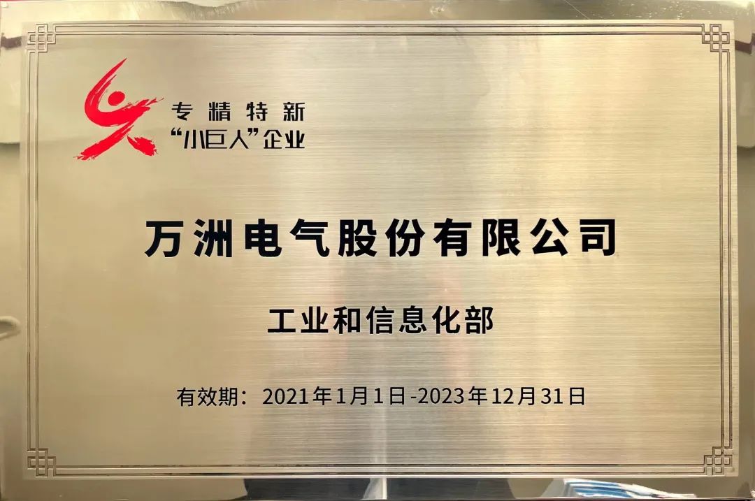 日前,國(guó)家工信部為國(guó)家級(jí)專精特新“小巨人”企業(yè)頒發(fā)獎(jiǎng)牌,萬(wàn)洲電氣被授牌。