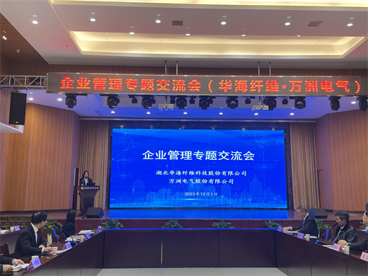 在一樓多功能會(huì)議廳,雙方開展企業(yè)管理專題交流討論。華海纖維作為萬洲電氣節(jié)能系統(tǒng)用戶,萬洲電氣襄陽研發(fā)中心總經(jīng)理路寧首先匯報(bào)了華海纖維系統(tǒng)運(yùn)行狀況以及進(jìn)一步發(fā)揮系統(tǒng)價(jià)值情況。隨后,雙方重點(diǎn)圍繞“黨群建設(shè)、企業(yè)管理提質(zhì)增效、新產(chǎn)品開發(fā)、綠色能源發(fā)展趨勢、市場營銷、人才儲(chǔ)備”等方面進(jìn)行深入探討和交流。趙總分享了“萬洲電氣擁有一支團(tuán)結(jié)勤勉的領(lǐng)導(dǎo)班子、萬洲的創(chuàng)新、培訓(xùn)、企業(yè)文化”等發(fā)展壯大的法寶。周書記從華海纖維如何培養(yǎng)員工的歸屬感、凝聚力、榮譽(yù)感等方面介紹了獨(dú)特的管理方法,并分享了華海纖維依靠科技創(chuàng)新?lián)屨夹率袌觥⒑侠聿季謶?zhàn)略客戶、防范資金風(fēng)險(xiǎn)等管理經(jīng)驗(yàn)。交流中,雙方還就提升企業(yè)執(zhí)行力、人才隊(duì)伍建設(shè)、企業(yè)上市路徑規(guī)劃等方面展開深入討論。