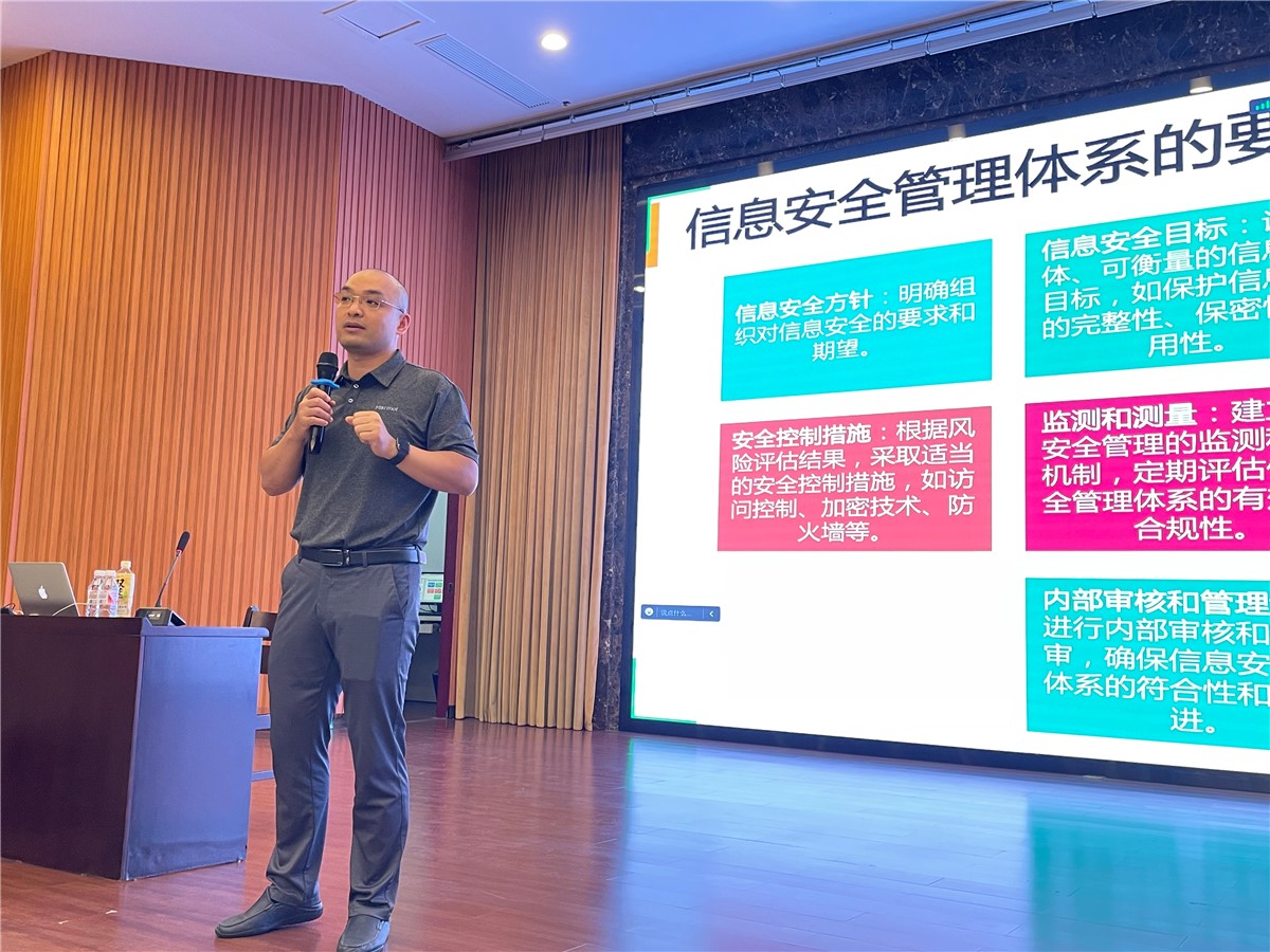 培訓中,大家認真學習并紛紛提問,針對公司信息安全管理以及節能系統信息技術服務中遇到的問題向周老師請教解決方案。通過一天半的系統培訓,大家都表示受益匪淺,不僅加深了對信息安全管理標準的理解,更是提高了信息安全防范意識,對后期信息安全管理體系貫標運行有很大幫助。