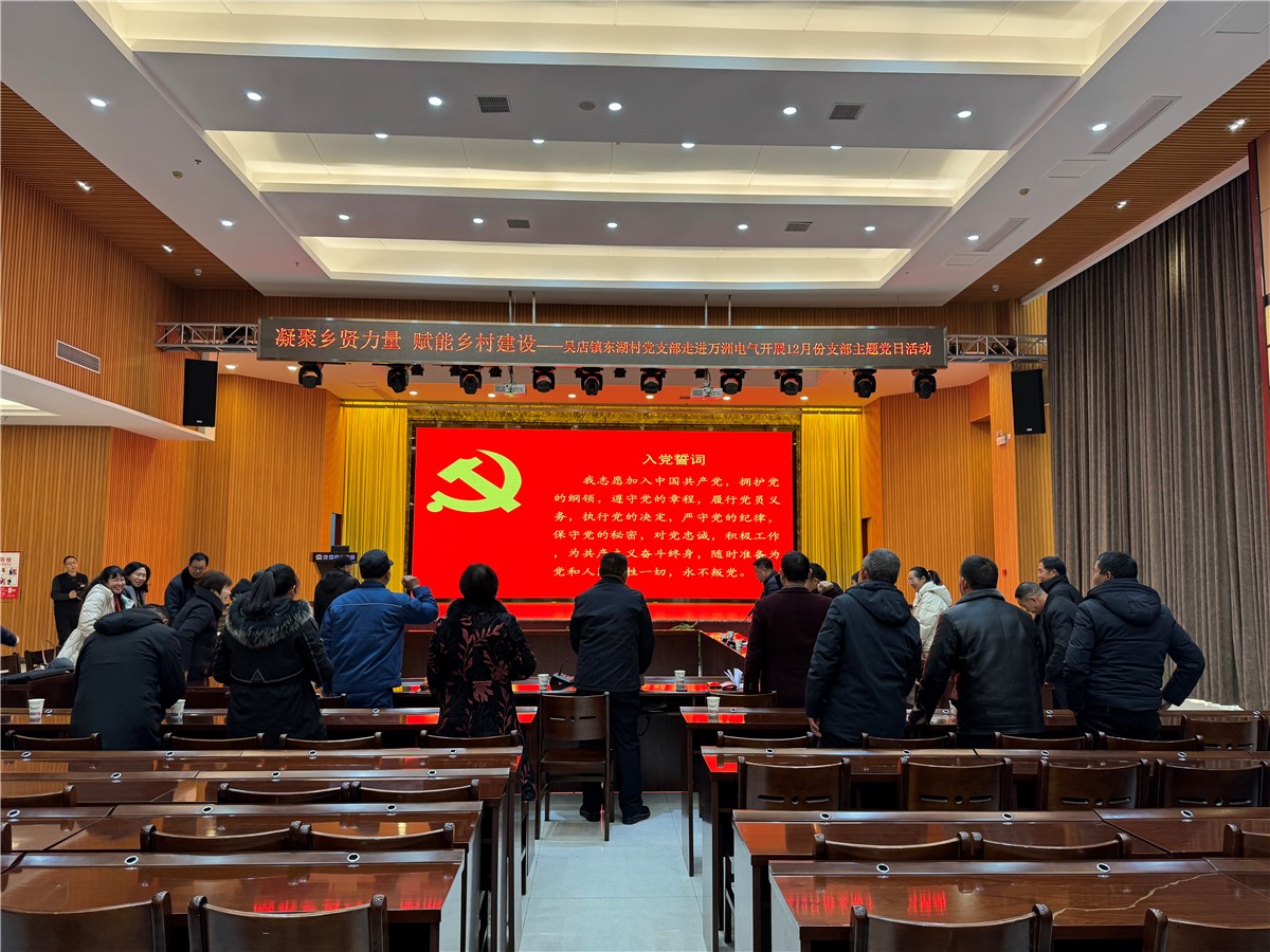 冬日寒風凜冽,會場氣氛熱烈。12月24日上午,棗陽市吳店鎮(zhèn)東趙湖村兩委干部、黨員代表、群眾代表、鄉(xiāng)賢代表30余人到萬洲電氣開展主題黨日活動。